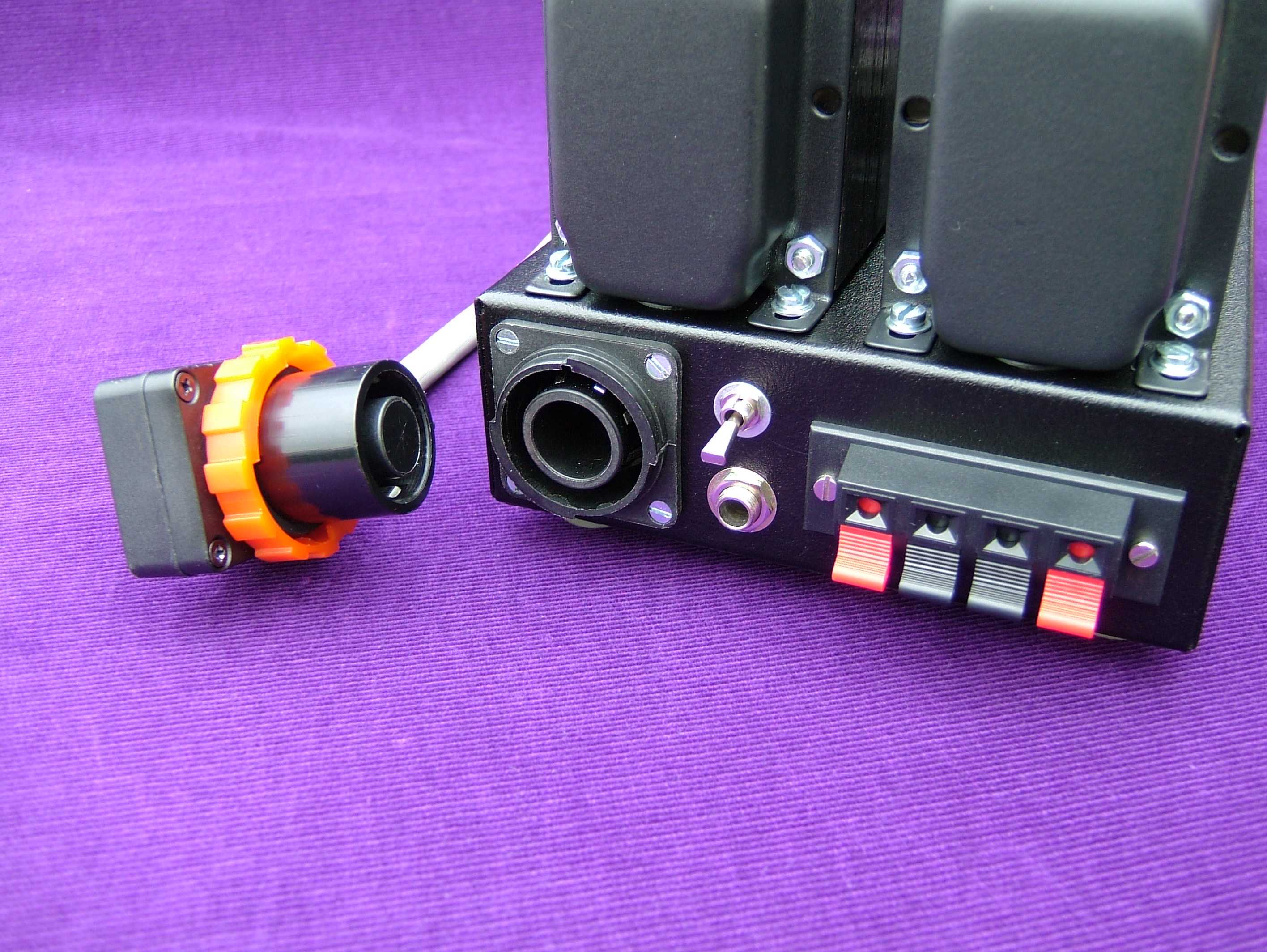 Une ligne de commande permet la mise en fonction de l’alimentation, à partir de l’amplificateur ou du préamplificateur. Le choix du connecteur s’est porté sur un modèle à 8 broches de Cliff Ltd. Il peut supporter un courant de 15 A par broche et est testé en isolation à 2,5 kV (figure10-1 figure 10-2 figure 10-3 photo 12).