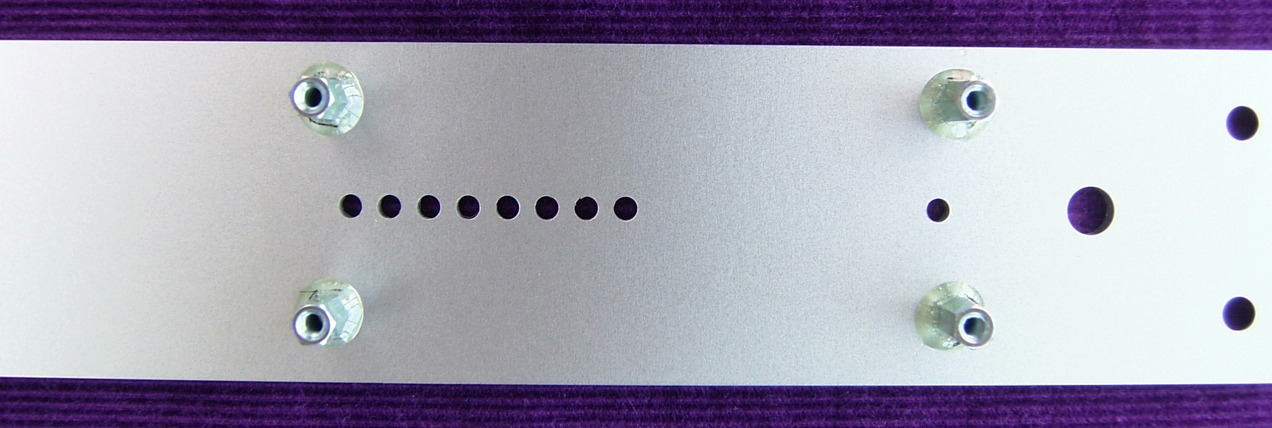 Après perçage de la tôle inférieure, il y a lieu de marquer l’alignement des trois trous des socles XLR et USB.
