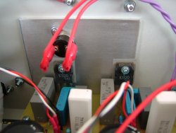 La carte des alimentations est fixée sur cinq entretoises M3 de 10 ou 15 mm, la sixième entretoise située sous TR1 n’est pas fixée au circuit, mais seulement au profilé alu. La carte de sortie est fixée par quatre entretoises M3 de 20 mm. Les divers éléments sont ensuite reliés entre-eux. Après plusieurs vérifications sourcilleuses, ce sera le moment de re-tester l’ensemble de l’appareil et de procéder au réglage.