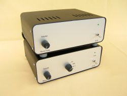 Cet ensemble met en œuvre un système composé d’un amplificateur push-pull de EL95 et d’un préamplificateur « esclave » à tube ECC81 intégrant une entrée USB, S/PDIF et deux linéaires. Il développe une puissance musicale de 2 x 4,5 W pour une puissance nominale qui s’établit à 2 x 3 W RMS à moins de 1% de distorsion.